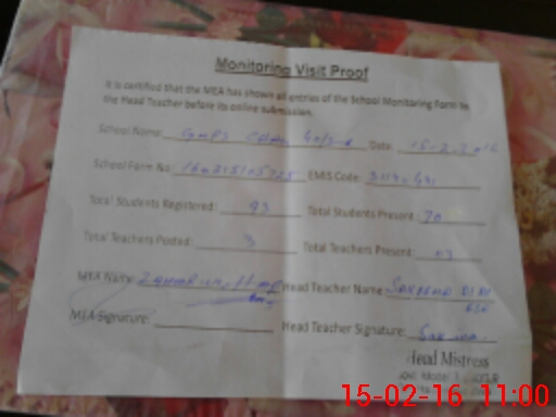| Attendance Register | Head Teacher | MEA with School | Visit Proof |