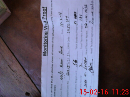 | Attendance Register | Head Teacher | MEA with School | Visit Proof |