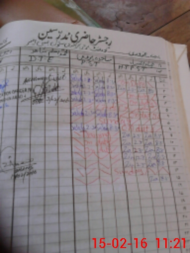 | CNIC | Full Name | Designation | R/C | Absence During Last Calender Month |