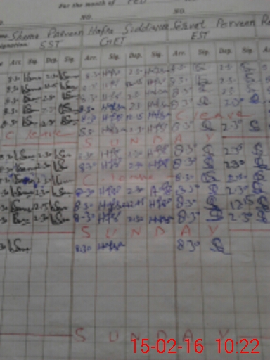 | Monitoring Date: 15-02-2016 | Start Time: 15-02-2016 09:59 AM | End Time: 15-02-2016 10:41 AM | Name of MEA: Mu**** Ja**** An**** | |
