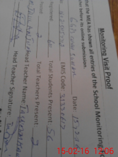| Certified that this School was Inspected by the Undersigned MEA/DMO Today and the Information Stated Above is as Per Record. | |||||