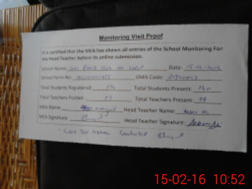 | Certified that this School was Inspected by the Undersigned MEA/DMO Today and the Information Stated Above is as Per Record. | |||||