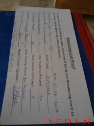 | Attendance Register | Head Teacher | MEA with School | Visit Proof |