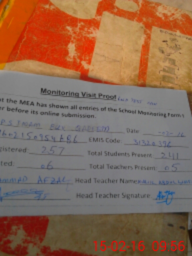 | Attendance Register | Head Teacher | MEA with School | Visit Proof |