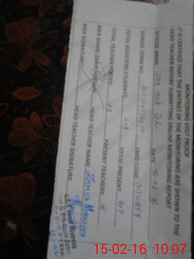 | Monitoring Date: 15-02-2016 | Start Time: 15-02-2016 09:34 AM | End Time: 15-02-2016 10:09 AM | Name of MEA: Za**** Hu**** | |