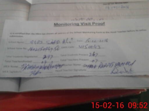 | Attendance Register | Head Teacher | MEA with School | Visit Proof |