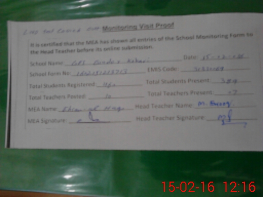 | Attendance Register | Head Teacher | MEA with School | Visit Proof |