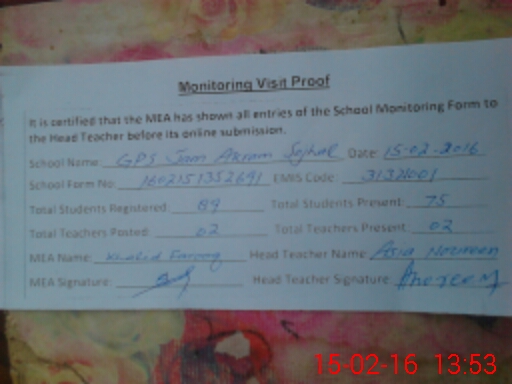 | EMIS Code: 31321001 | Name of School: GGPS JAM AKRAM SOJHAL | |||