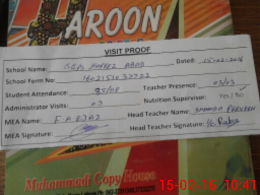 | EMIS Code: 32430179 | Name of School: GGPS HAFEEZ ABAD | |||