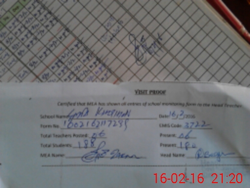 | Attendance Register | Head Teacher | MEA with School | Visit Proof |