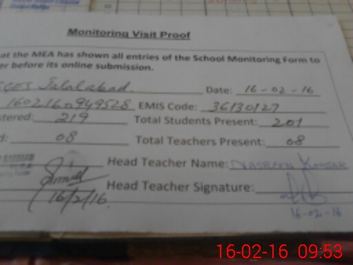 | Certified that this School was Inspected by the Undersigned MEA/DMO Today and the Information Stated Above is as Per Record. | |||||