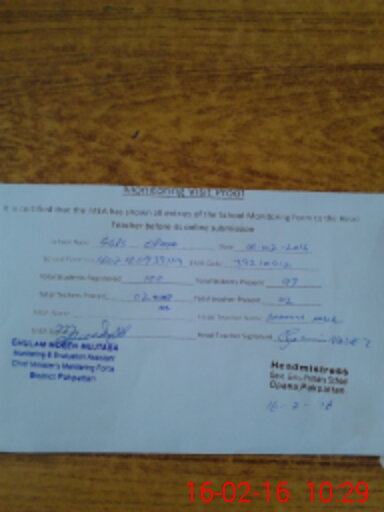 | Attendance Register | Head Teacher | MEA with School | Visit Proof |