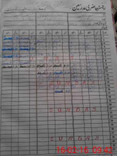 | CNIC | Full Name | Designation | R/C | Absence During Last Calender Month |