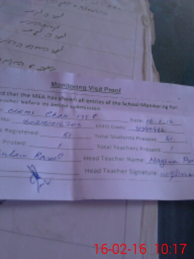 | Attendance Register | Head Teacher | MEA with School | Visit Proof |