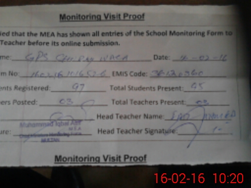 | Certified that this School was Inspected by the Undersigned MEA/DMO Today and the Information Stated Above is as Per Record. | |||||