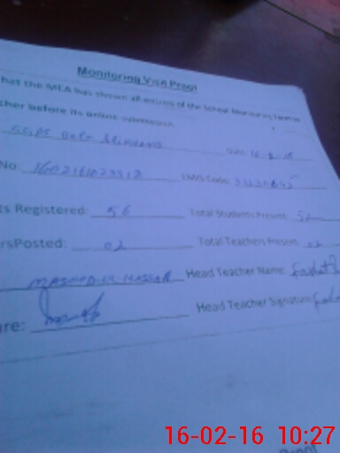 | Attendance Register | Head Teacher | MEA with School | Visit Proof |