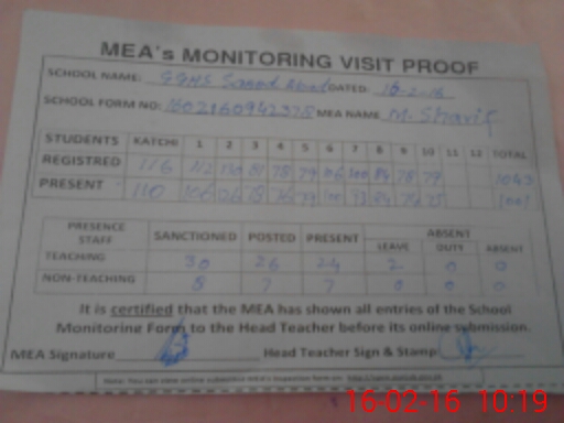 | Certified that this School was Inspected by the Undersigned MEA/DMO Today and the Information Stated Above is as Per Record. | |||||