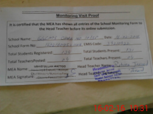 | Certified that this School was Inspected by the Undersigned MEA/DMO Today and the Information Stated Above is as Per Record. | |||||