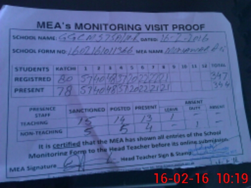 | Certified that this School was Inspected by the Undersigned MEA/DMO Today and the Information Stated Above is as Per Record. | |||||