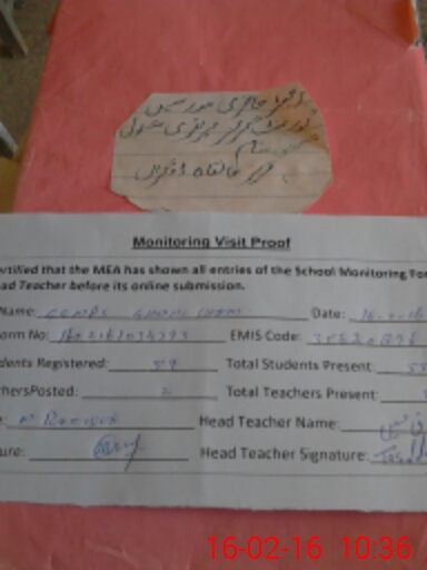 | EMIS Code: 35620896 | Name of School: GGPS MODEL GHANI SHAM | |||