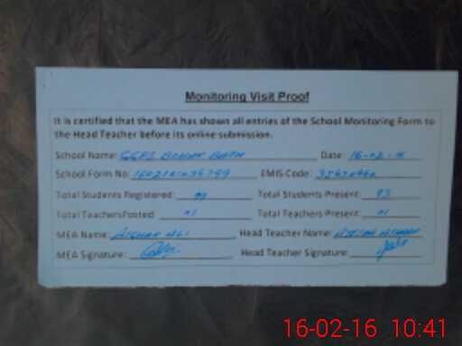 | Certified that this School was Inspected by the Undersigned MEA/DMO Today and the Information Stated Above is as Per Record. | |||||