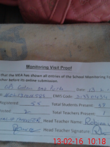 | EMIS Code: 31330434 | Name of School: GPS GULLAN DAD PUTRA | |||