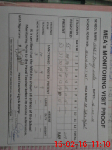 | Monitoring Date: 16-02-2016 | Start Time: 16-02-2016 10:27 AM | End Time: 16-02-2016 11:14 AM | Name of MEA: M.Ta**** Iq**** (S**** | |