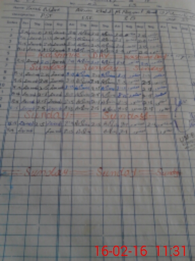 | Monitoring Date: 16-02-2016 | Start Time: 16-02-2016 11:13 AM | End Time: 16-02-2016 11:34 AM | Name of MEA: Mu**** iq**** (D**** | |