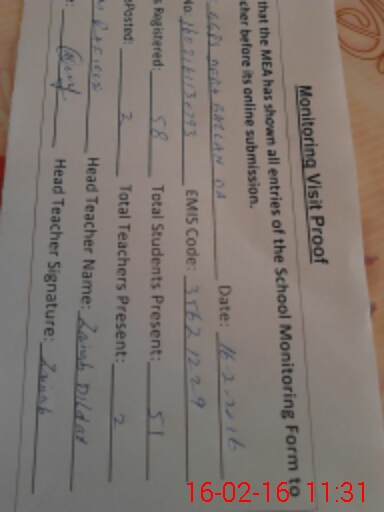 | Certified that this School was Inspected by the Undersigned MEA/DMO Today and the Information Stated Above is as Per Record. | |||||