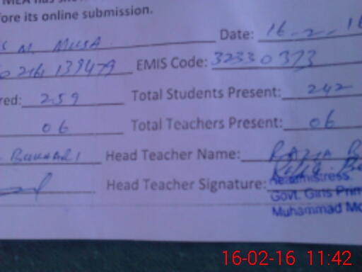 | EMIS Code: 32330373 | Name of School: GGES MUHAMMAD MUSA | |||