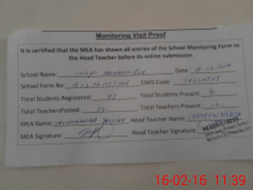 | Certified that this School was Inspected by the Undersigned MEA/DMO Today and the Information Stated Above is as Per Record. | |||||