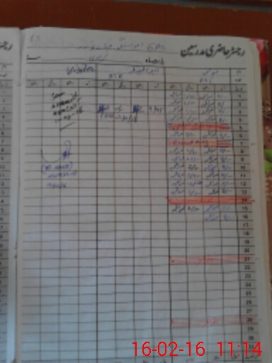 | CNIC | Full Name | Designation | R/C | Absence During Last Calender Month |
