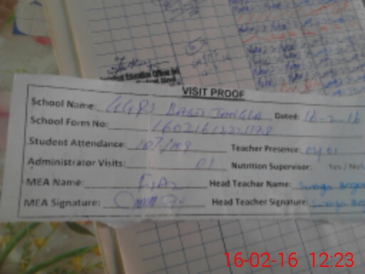 | Attendance Register | Head Teacher | MEA with School | Visit Proof |