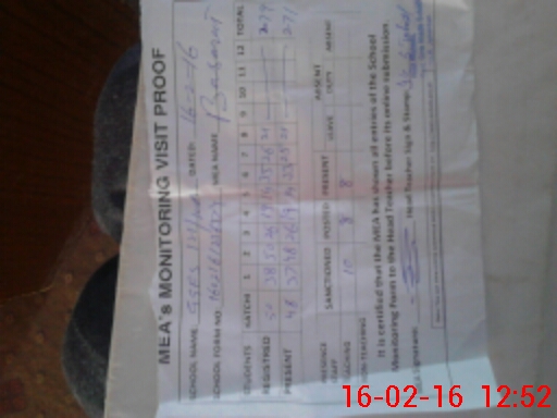| Attendance Register | Head Teacher | MEA with School | Visit Proof |