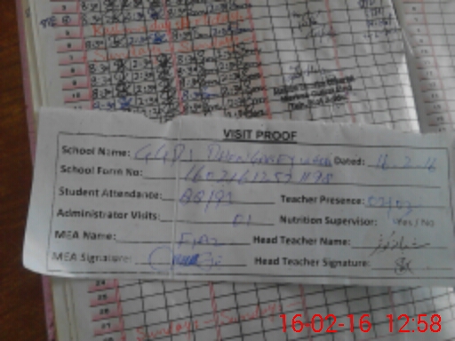 | Attendance Register | Head Teacher | MEA with School | Visit Proof |