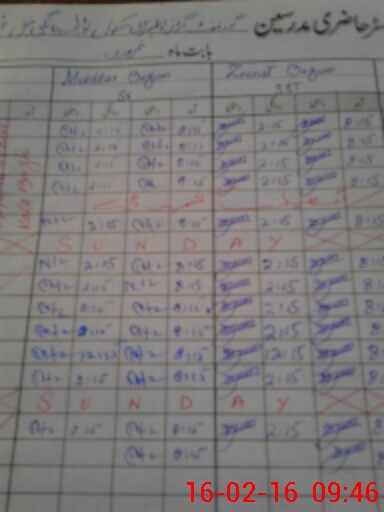 | CNIC | Full Name | Designation | R/C | Absence During Last Calender Month |