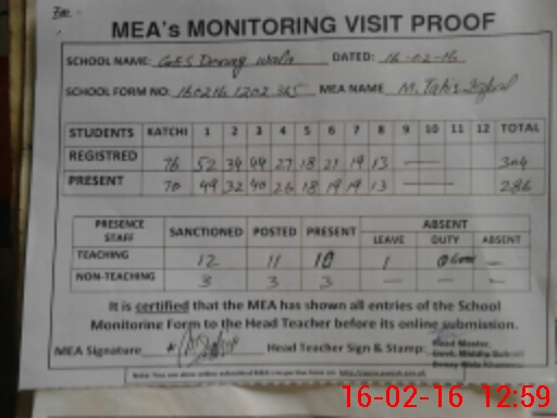 | Attendance Register | Head Teacher | MEA with School | Visit Proof |