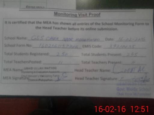 | EMIS Code: 39210035 | Name of School: GES CHAK NOOR MUHAMMAD | |||