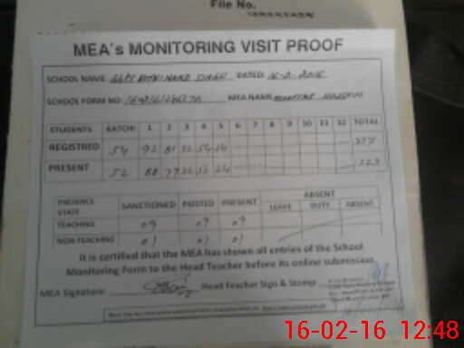 | Attendance Register | Head Teacher | MEA with School | Visit Proof |