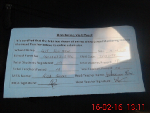| Attendance Register | Head Teacher | MEA with School | Visit Proof |