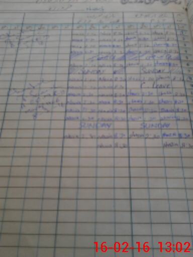 | CNIC | Full Name | Designation | R/C | Absence During Last Calender Month |
