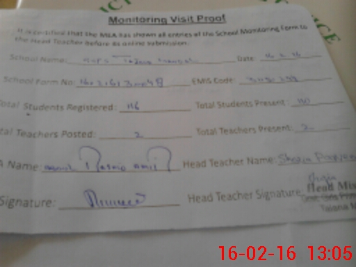 | Attendance Register | Head Teacher | MEA with School | Visit Proof |