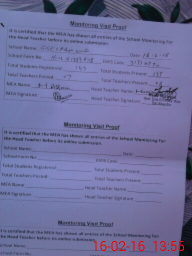| Attendance Register | Head Teacher | MEA with School | Visit Proof |