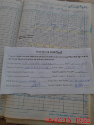 | Attendance Register | Head Teacher | MEA with School | Visit Proof |