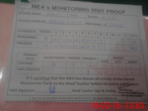 | Certified that this School was Inspected by the Undersigned MEA/DMO Today and the Information Stated Above is as Per Record. | |||||