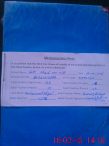 | Certified that this School was Inspected by the Undersigned MEA/DMO Today and the Information Stated Above is as Per Record. | |||||