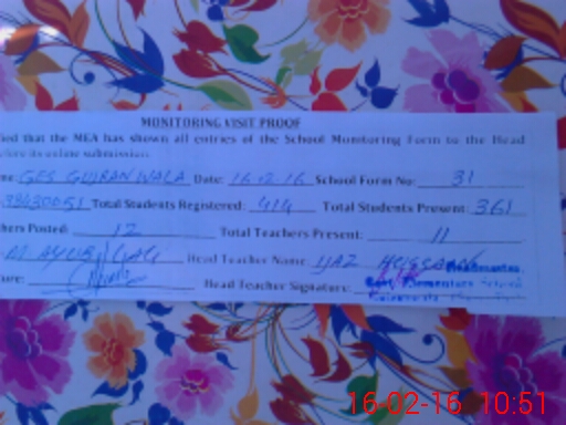 | EMIS Code: 38430051 | Name of School: GES GUJRAN WALA | |||