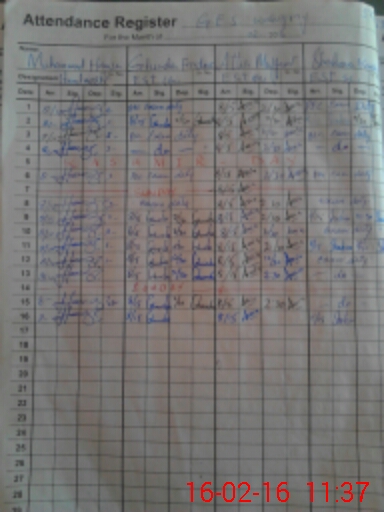 | CNIC | Full Name | Designation | R/C | Absence During Last Calender Month |