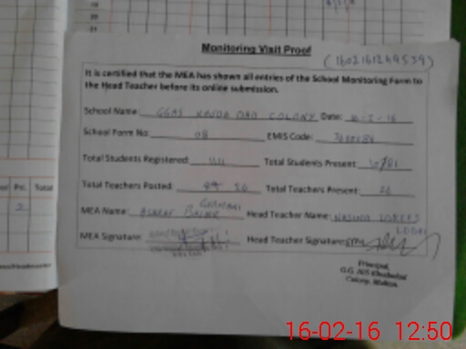 | Attendance Register | Head Teacher | MEA with School | Visit Proof |