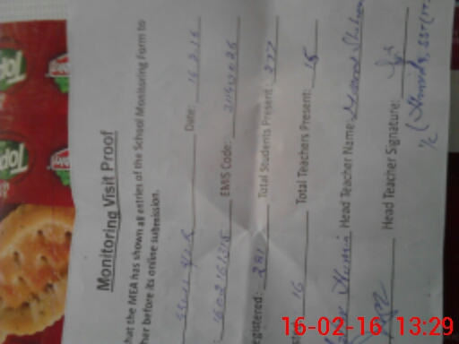 | Remarks (Use Separate Page if Required): Supplementary reading material Available Utility No Acting head teacher carried teacher attendance register went to attend meeting | |||||